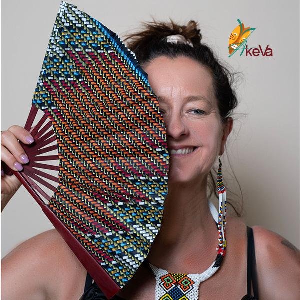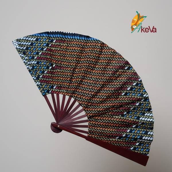 Cet éventail, à la fois élégant et pratique, est une véritable œuvre d'art qui mêle tradition et modernité. Fabriqué à la main avec soin, il présente des motifs géométriques vibrants inspirés de l'art tribal africain. C'est l'accessoire parfait pour ajouter une touche d'originalité et de sophistication à votre tenue.