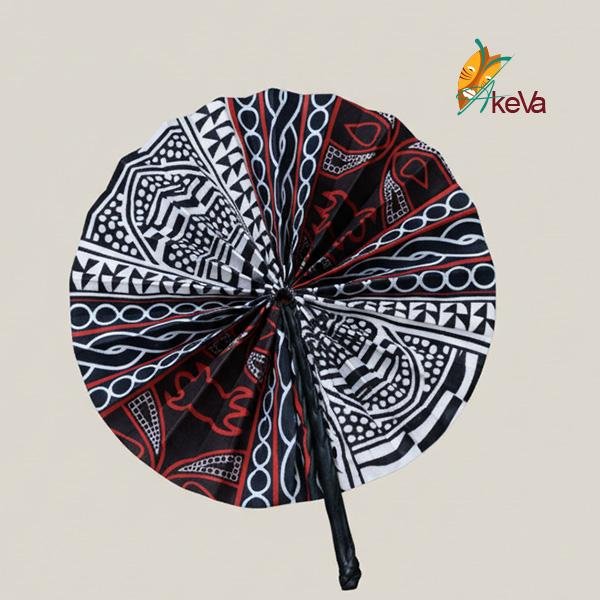 Découvrez cet éventail pliable au design captivant, un accessoire unique qui combine fonctionnalité et style artistique. Arborant des motifs géométriques audacieux en noir, blanc et rouge, inspirés de l'art tribal africain, il apporte une touche d'élégance mystérieuse et d'authenticité à toute tenue. Léger et facile à transporter, il est parfait pour vous rafraîchir avec distinction.